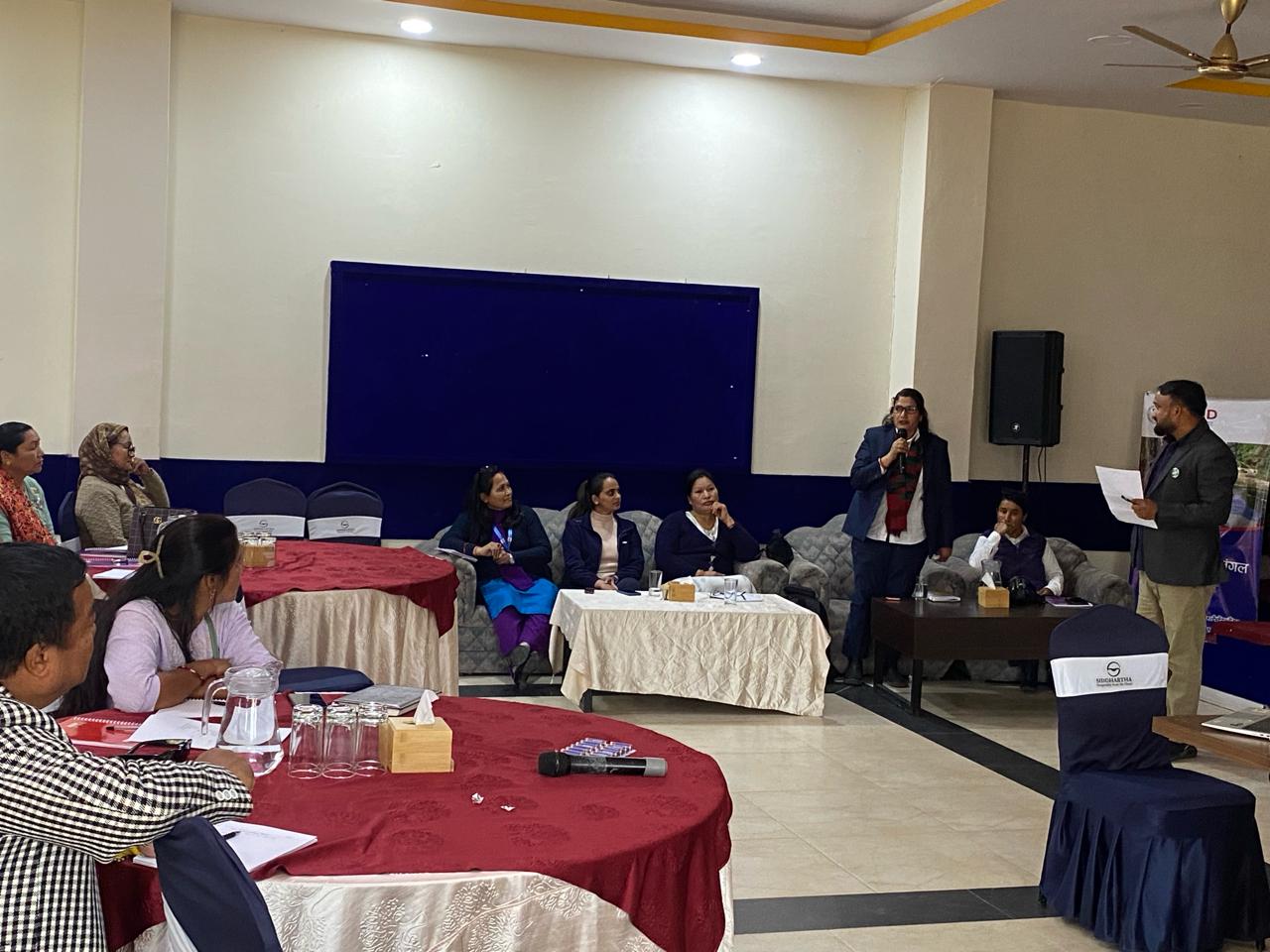 कार्यक्रमको अध्यक्षता उद्योग, पर्यटन , वन तथा वातावरण मन्त्रालयका अधिकृत श्री रेणुका न्यौपानेले गरेको कार्यशालामा प्रमुख अतिथिको रुपमा आन्तरिक मामिला तथा कानुन मनत्रालयका निर्मला रेग्मीले गरेकी थिइन् । त्यस्तै कार्यक्रमको सञ्चालन यूएसएआइडी जल जंगल अनुगमन मुल्याङ्कन तथा संचार वरिष्ठ अधिकृत निर्मल नेपालीले गरेका थिए ।
