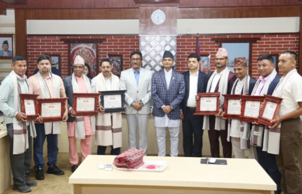 सुर्खेत: संघीय सरकारले वैदेशिक रोजगारीबाट फर्केर नेपाल उद्यम गरी बसेका उद्यमी लक्ष्मीप्रसाद ढकाल पुरस्कारसहित सम्मानित गरिएकाे छ । ढकाललाई मङ्गलबार श्रम रोजगार तथा सामाजिक सुरक्षा मन्त्रालयका मन्त्री सरदसिंह भण्डारीले सम्मान तथा पुरस्कार प्रदान गरेका हुन् । विदेशबाट फर्किएर स्वदेशमै व्यवसायमा संलग्नहरूलाई मन्त्रालयले राष्ट्रिय सम्मान तथा पुरस्कार प्रदान गरेको छ। सम्मानित भएका ढकाल सुर्खेतमा देउती होजियारी उद्योग ऐन ट्रेडिङ सेन्टर प्रा.लिका सञ्चालक हुन् । ढकालले पाएकाे पुरस्कारको राशी नगद ७५ हजार रहेकाे छ । मन्त्रालयले पुरस्कार वितरणका लागि देशभरिबाट आवेदन माग गरेको थियाे । तिमध्य ७२ जनाले आवेदन गरेका थिए। विभिन्न छनोटहरू प्रक्रिया पूरा गर्दै कर्णालीबाट उद्यमी ढकालले उक्त पुरस्कार प्राप्त गर्न सफल भएका हुन् ।