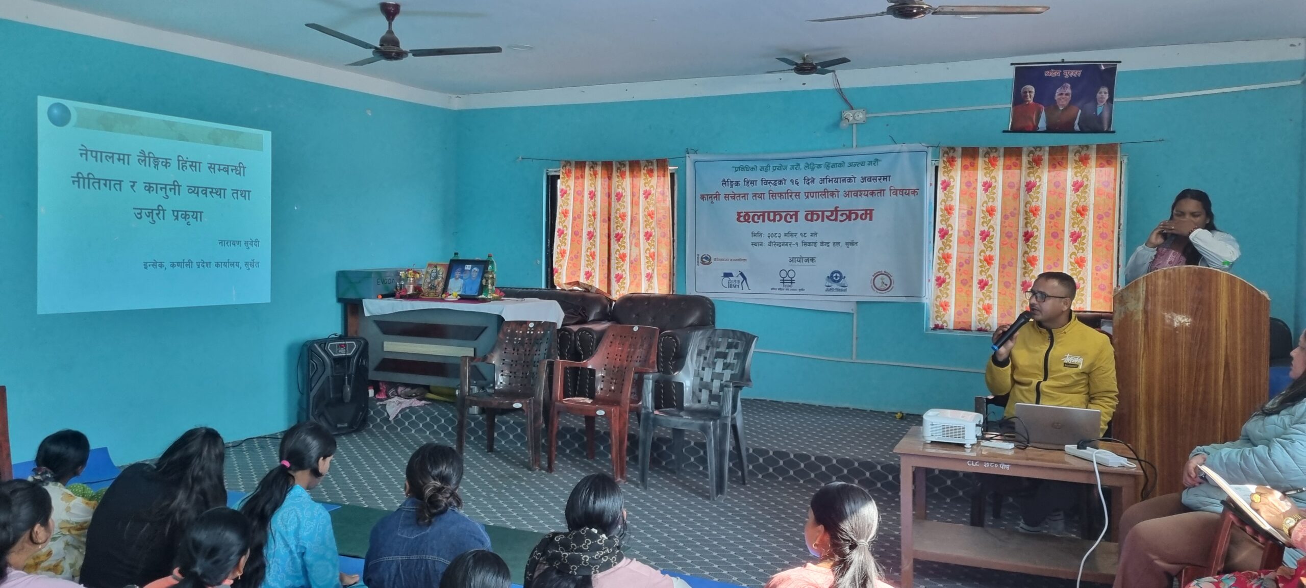 सुर्खेत : लैङ्गिक हिंसा विरुद्धको १६ दिने अभियानको अवसरमा वीरेन्द्रनगरमा कानुनी सचेतना तथा सिफारिस प्रणाली सुदृढीकरण सम्बन्धी महत्वपूर्ण छलफल कार्यक्रम सम्पन्न गरिएको छ । बिहीबार इन्सेक, फेडो, सोसेक नेपाल र जुरी नेपालको संयुक्त आयोजनामा वीरेन्द्रनगर–१ स्थित सिकाइ केन्द्रमा भएको कार्यक्रममा लैङ्गिक हिंसा रोकथाम, पीडितमैत्री सेवा प्रणाली, सिफारिस प्रक्रियाको प्रभावकारिता तथा साइबर सुरक्षाजस्ता मुद्दामा बहुआयामिक छलफल गरिएको थियो ।